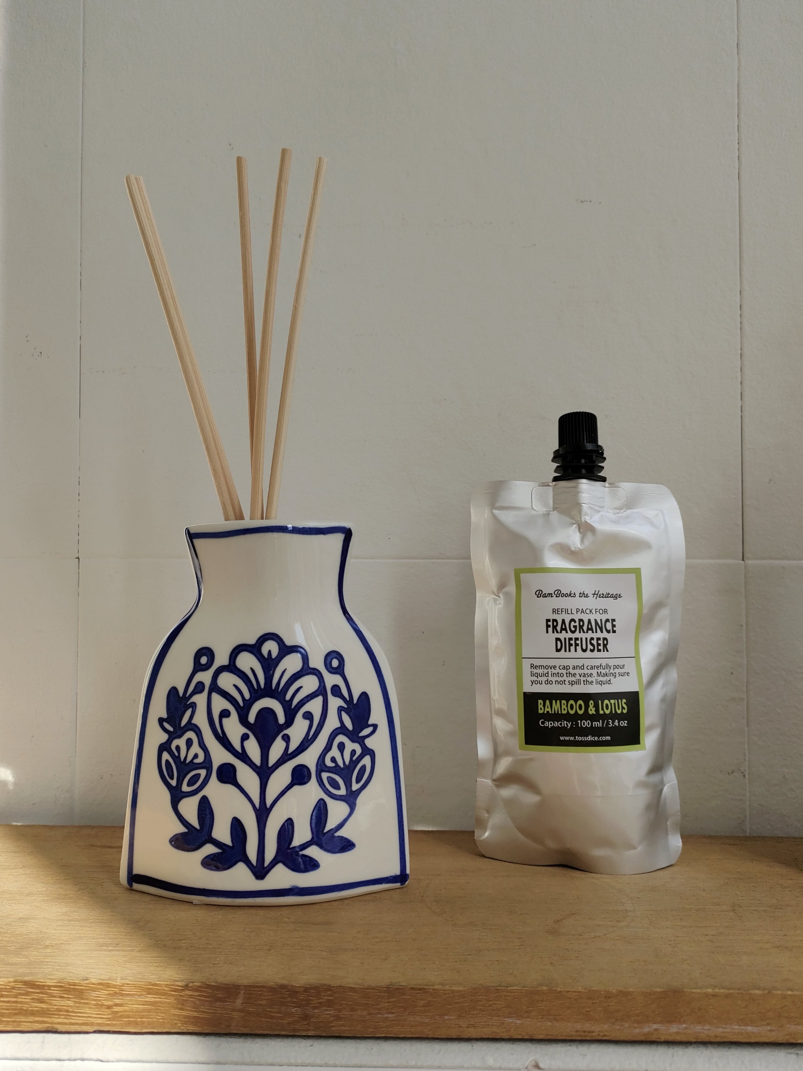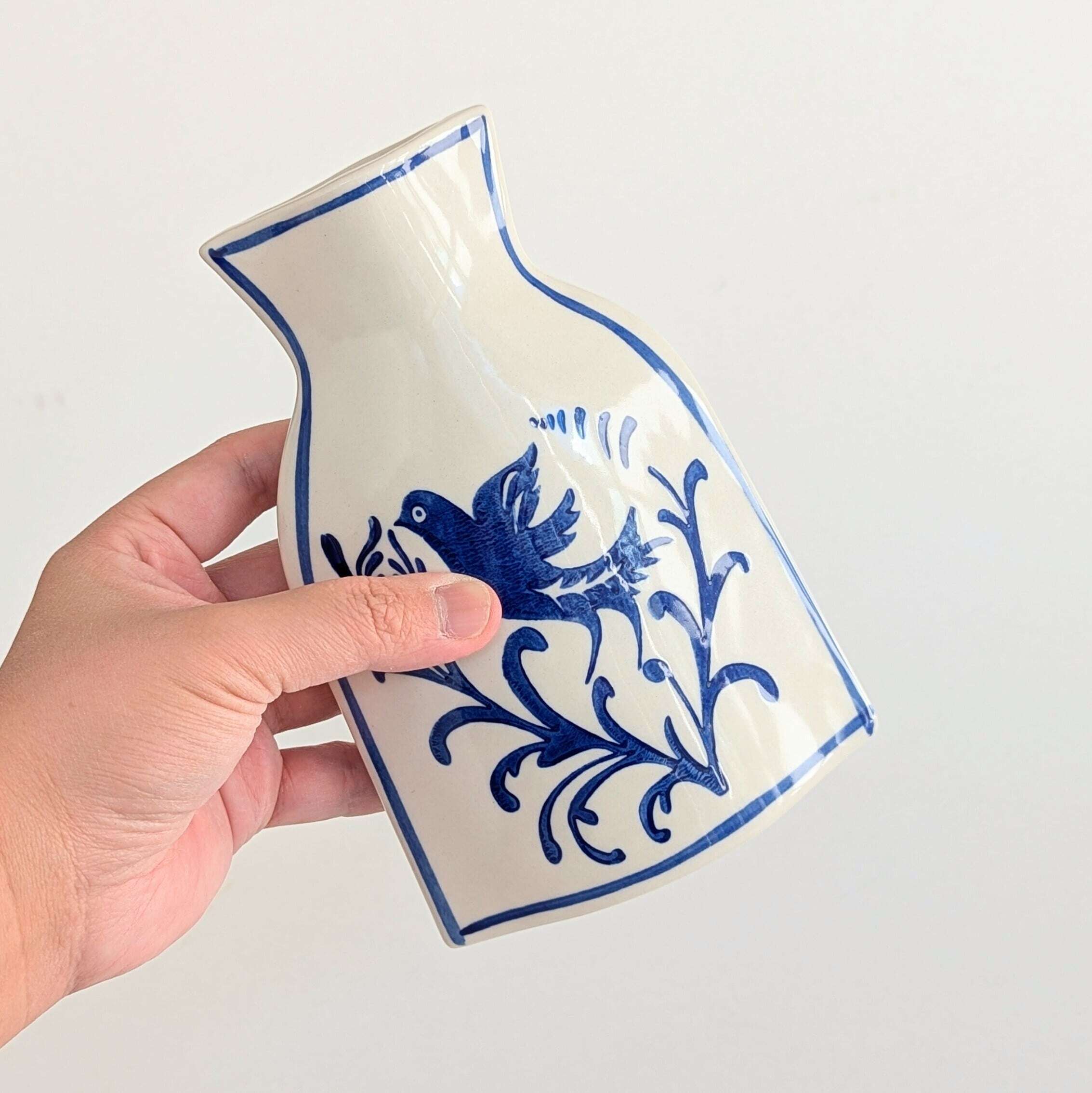 水を入れて使用可能で、平らなボディに施された手書きデザインがインテリアとしても特別な存在感を演出します。